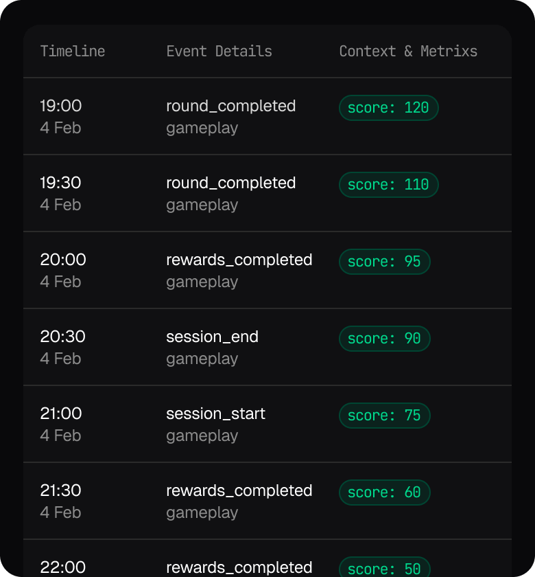 Playlog AI eliminates that setup burden by auto- tracking core gameplay and economy interactions through our SDK.